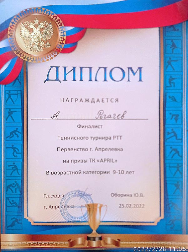 Поздравляем А. Рогачева, ставшего финалистом теннисного турнира РТТ!