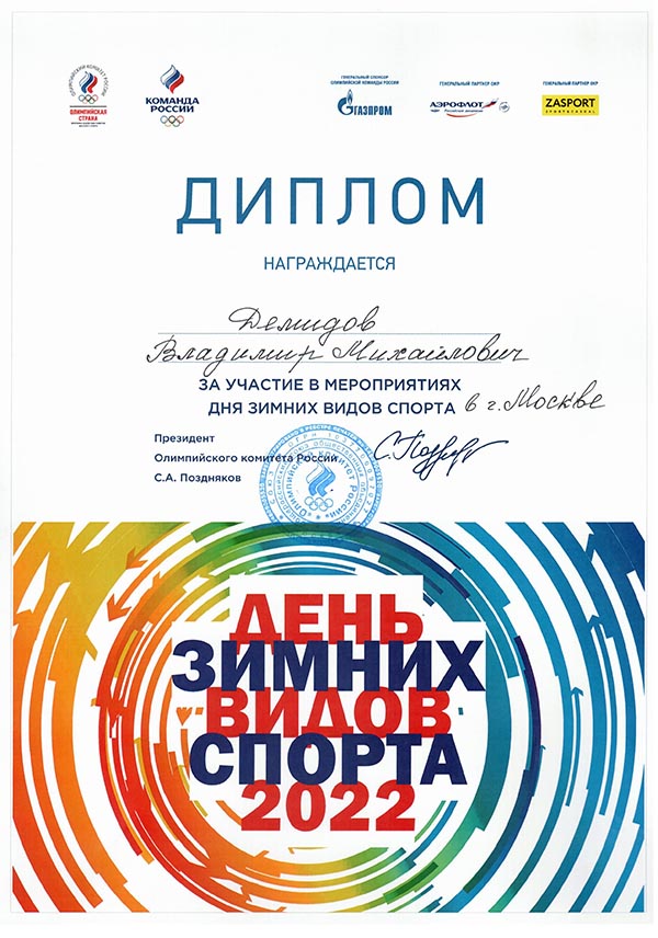 День зимних видов спорта — общенациональный праздник олимпизма, спорта и здорового образа жизни, в рамках которого проходит большое количество любительских соревнований соревнования по снежным и ледовым видам спорта, мастер-классы и автограф-сессии профессиональных спортсменов. Ежегодно в мероприятии принимают участие около 1 млн человек.