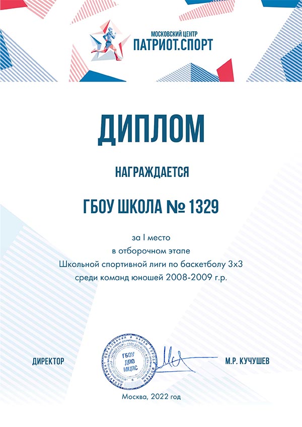 По итогам состязаний среди юношей 2008–2009 победителями стали ученики школы № 1329, завоевав золотые медали!