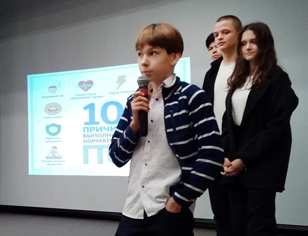 Иван Анненков рассказал о себе и о своей подготовке к выполнению нормативов на золотой значок ГТО, который он получил за 2-ую ступень и призвал ребят активнее включаться в подготовку к выполнению нормативов комплекса ГТО.