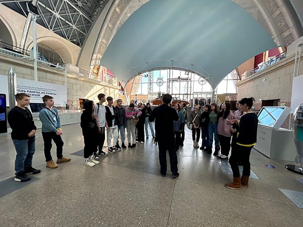 В этот раз мы выбрали урок химии по теме «Ракетные двигатели и химические реакции». Совместили всё это мы с обозорной экскурсией по самому павильону Центра.