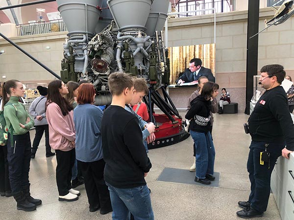 Впечатлениями от сегодняшего дня поделилась ученица 8-В класса Лиана: «Наш класс сегодня был в Центре Космонавтики. Я никогда не увлекалась космосом, но после интересной экскурсии и квеста, у меня не осталось никаких сомнений, чтобы посетить его снова. Там мы узнали много интересного о ракетных двигателях, космических станциях и поражающих достижениях нашей страны. Очень рада, что побывала там!»