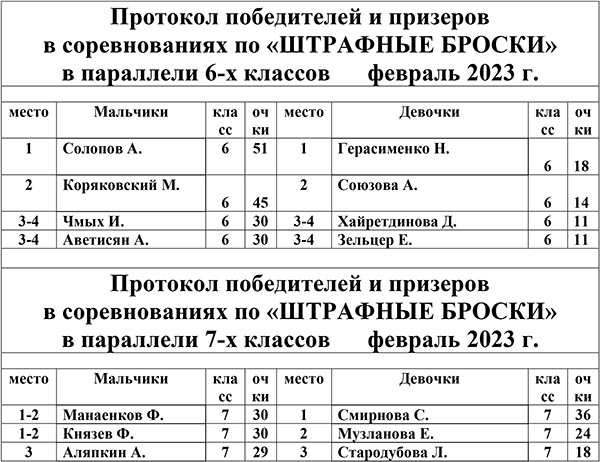 В программе были 10 штрафных бросков. Соревнования проводились в рамках подготовки к Президентским играм. За попадание в баскетбольное кольцо из различных точек начислялись очки от 1-го до 6-ти. В итоге определились победители и призеры как в классах, так и в параллели.