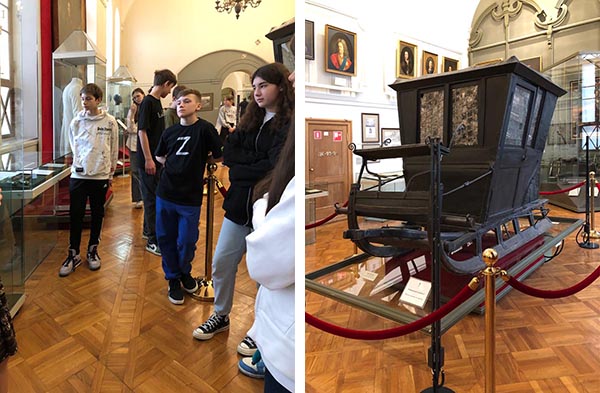 Среди экспонатов ребят особенно впечатлили Возок Петра I — редкий экземпляр дорожного экипажа конца XVII — начала XVIII века. В конце экскурсии ребята представили, что находятся на аудиенции у императрицы, После экскурсии мы посетили Нулевой километр — это особая отметка, от которой ведется отсчет дорожных расстояний. Находится она в историческом центре города, на Манежной площади, постояли в центре символа и каждый загадал желание, которое должно обязательно исполниться в этом году.