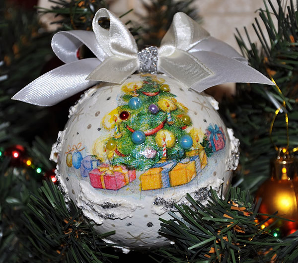 Видео с мастер класса "Делай вместе с нами. Декорирование елочного шара в технике декупаж"