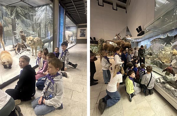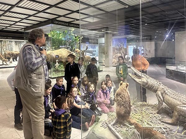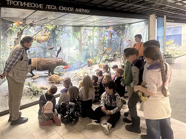 На другой экскурсии дети познакомились с красочным многообразием животного мира нашей планеты. Увидели обитателей тропических лесов, саванн, высокогорий и морских побережий. Узнали о видимых и невидимых связях между ними.