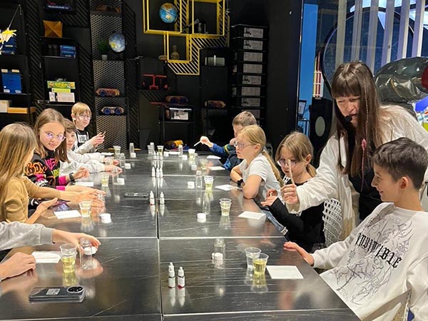 Вместе с детьми экскурсоводы провели опыты и путем эксперимента познакомили с величайшими открытиями деятелей науки России.
