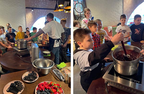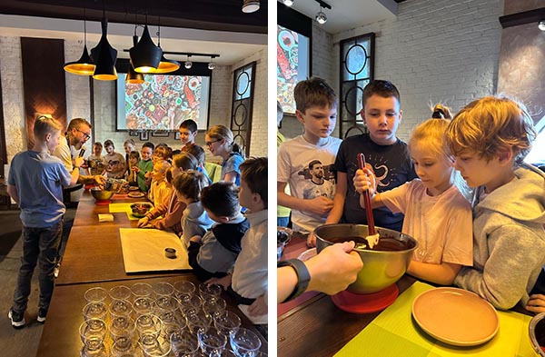 Очень кстати была проведена небольшая беседа -лекция и викторина о пищеварительной системе, принципах правильного питания и вреде фаст фуда. За правильные ответы дети получали талончики для получения любого десерта или пирожного. Завершилась экскурсия чаепитием с фирменными вкуснейшими десертами от Кондитерской. У детей был настоящий праздник!