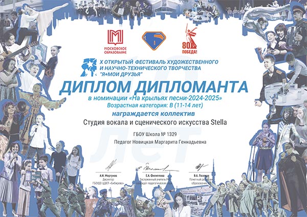 Студия вокала и сценического искусства "Стелла" приняла участие в X Открытом фестивале художественного и научно-технического творчества "Я + мои Друзья" в номинации «На крыльях песни».