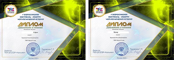 Дипломанты 2 степени - Анисия, Илья, Ксения, Виктория, Таисия, Микаэль, Василиса, Александр, София, Анна, Вера, Макар, Александра, Кира, Злата.