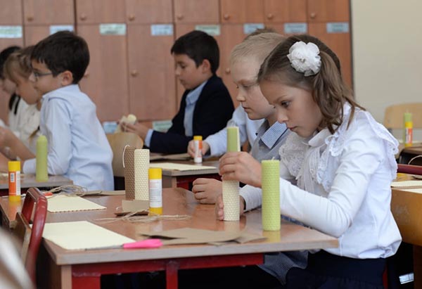 У каждого из ребят была возможность сделать свою свечу и не одну. Украсить сушеной лавандой, пшеницей или лентой. Ребята увлеклись мастер-классом, и даже не слышали звонка. Каждому хотелось порадовать близких сувениром, созданным своими руками. И у них все получилось, их смело можно называть свечных дел мастера!