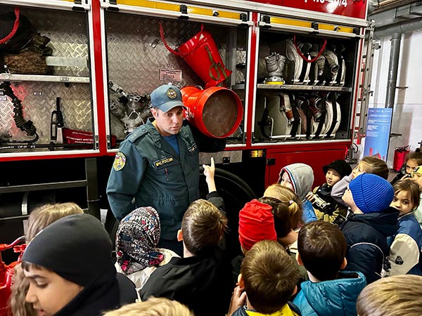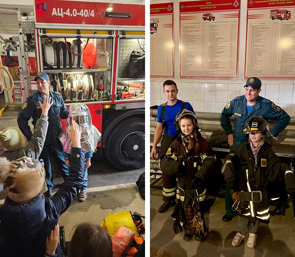 В ходе экскурсии ребята узнали, как правильно вести себя в случае пожара и что делать, чтобы обезопасить себя и окружающих в опасных ситуациях, связанных с огнем. Изучили оборудование спецмашин и снаряжение, которым пользуются те, кто каждый день рискует жизнью, спасая людей и дома от пожара, какую форму носят, как проходят их будни.