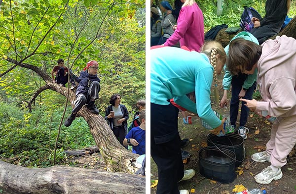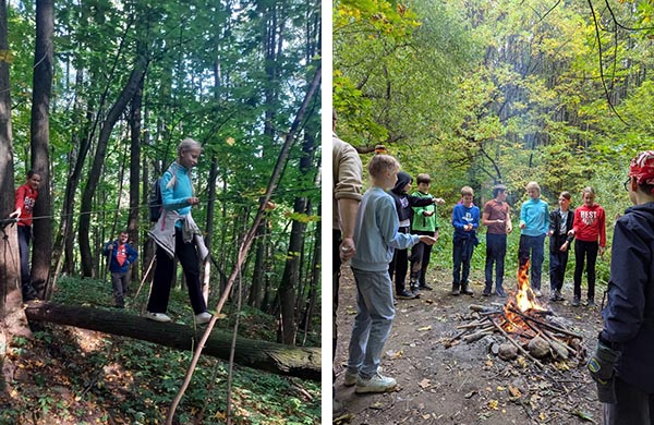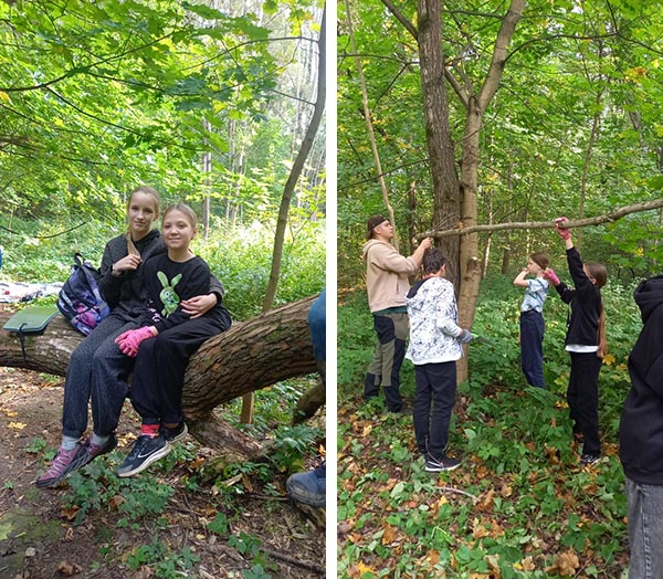 Всем очень понравилось переправляться через овраги и ручьи по бревну и тросу, строить шалаш, разводить костер, изучать лесные растения, собирать еловые ветки для таёжного чая, готовить еду, бегать, веселиться , играть и лазить по деревьям. С прекрасным бодрым настроением ребята вернулись в Москву, чтобы в понедельник вновь увидеться в любимой школе.
