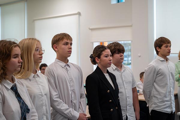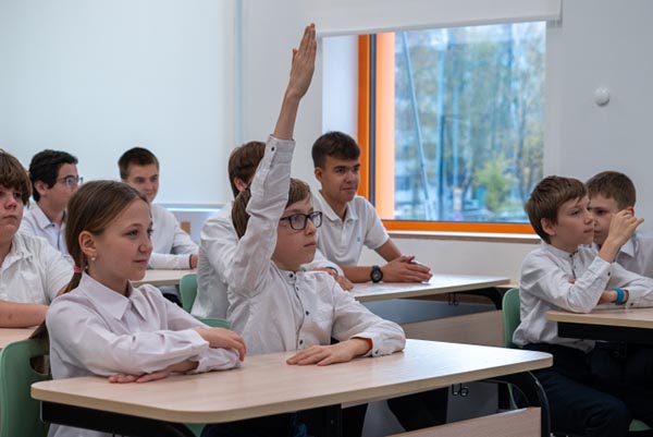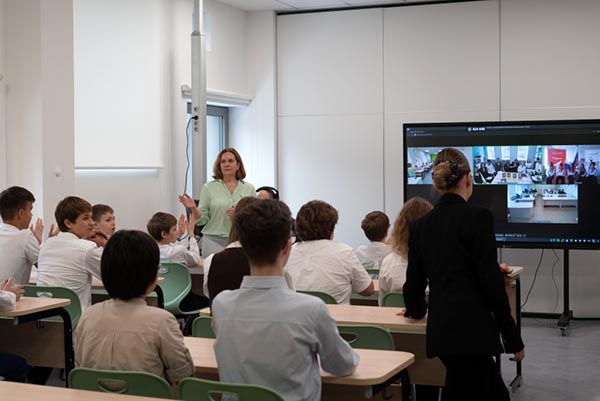 Тема телемоста - "Профессия - учитель". Участников конференции приветствовали заместитель директора Н.Л. Исаханян, советник по воспитанию М.В. Мереняшев, активисты движения "Первые". Ученики 6-М класса прочитали стихи, посвященные учителям.