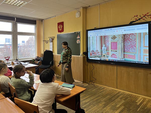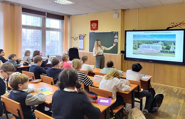 В начале ноября в 5-х и 6-х классах состоялся увлекательный бинарный урок, организованный куратором направления музейной педагогики Захаровой Т.И. и учителем музыки Ковалевой М.И. Этот урок стал настоящим событием для учащихся, так как они смогли совершить виртуальную экскурсию в Государственный музей-заповедник Кусково, известный своей богатой историей и уникальными экспонатами.