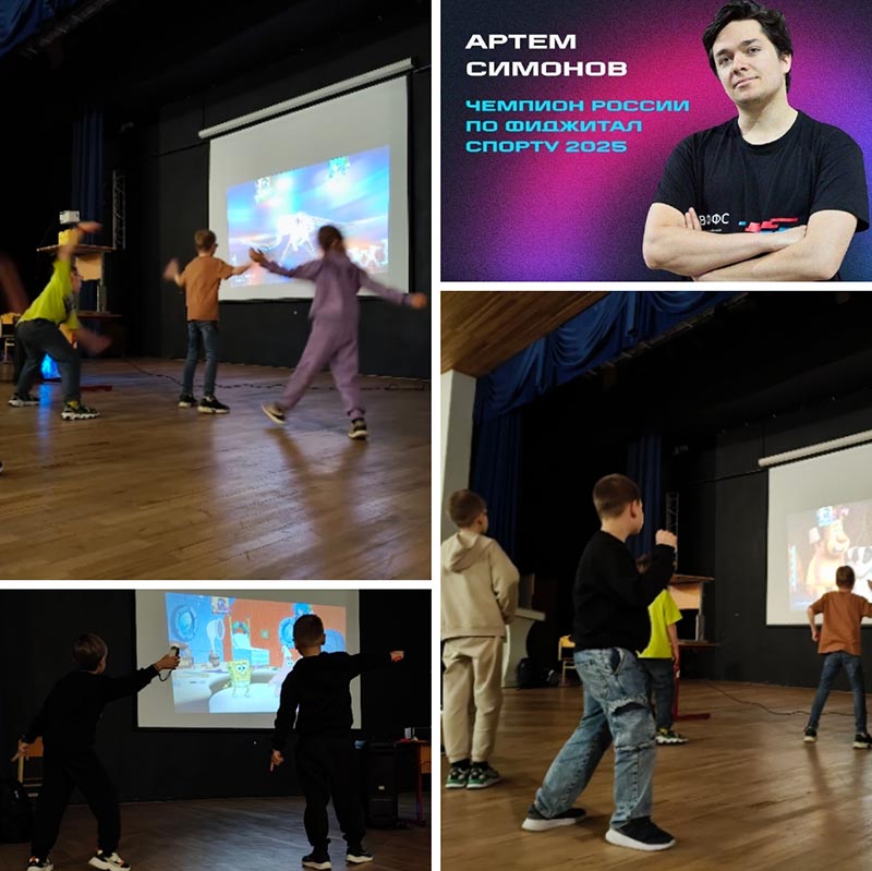 Прекрасной физической разминкой дня стал танцевальный мастер-класс, который провел для ребят двукратный чемпион России по танцевальному ритм-симулятору Артём Андреевич Симонов. Каждый игрок-участник повторял движения танцора на экране, а система с помощью датчиков отслеживала точность выполнения и оценивала результат в реальном времени, это делало процесс похожим на танец и соревнование одновременно.