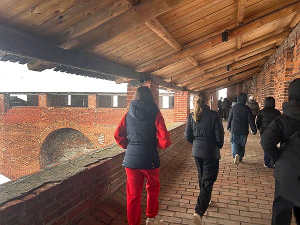 Знакомство с городом мы начали с посещения Кремля. Крепость из красного кирпича ни с чем не перепутать, а главную башню мы видели на открытках. Кремль проектировал в XVI веке итальянский мастер Пьетро Франческо Фрязин. Мы спустились в подземелье Дмитриевской башни. Мы узнали, как и для чего строили кремль, увидели кладку XVI века, спустились по винтовым лестницам, оценили акустику каменных сводов и сравнили оборонительные особенности круглой и квадратной башен.