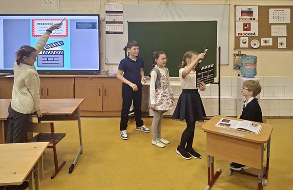 Дети познакомились с профессией Системный аналитик и Дистрибьютор в киноиндустрии. Мамы учеников очень познавательно рассказали о тонкостях своих профессий и провели мастер классы с детьми. Такие встречи позволяют ученикам расширить представление о возможных направлениях развития своей будущей карьеры и вдохновляет их задуматься о своём профессиональном будущем.