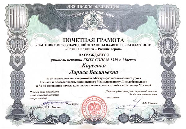 Урок, посвященный 84-ой годовщине начала контрнаступления советских войск в Битве за Москву, прошел в теплой, дружественной атмосфере.