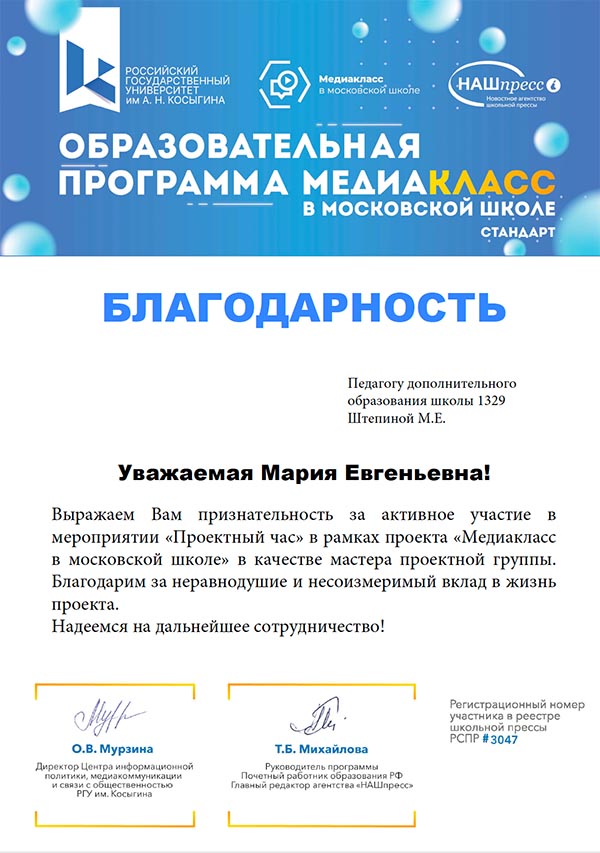 Программа «Проектный час» реализуется при поддержке Департамента образования и науки Москвы.