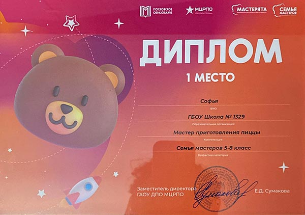 Школу 1329 представляли: Софья из 6-М класса и её мама Александра Емельяновна, наставник - Лаврентьева Татьяна Анатольевна.