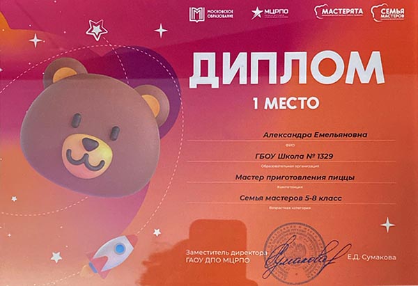 Командам необходимо было за 3 часа изготовить 2 пиццы "Маргарита" и 2 пиццы "Пепперони", а затем презентовать их. Наша команда блестяще справилась с заданием и заняла 1 место среди 35 участников!