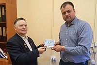 Руководитель ШСК "Олимпийский факел победы" Демидов Владимир Михайлович благодарит первого заместителя директора школы Аверченкова Анатолия Александровича за обеспечение школьного спортивного клуба экипировкой спортсменов, брендированной атрибутикой и символикой для награждения.